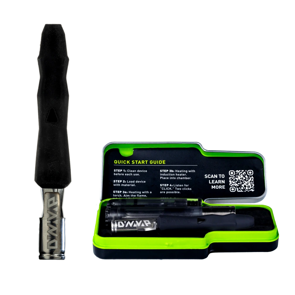 El Starter Pack te trae los accesorios perfectos para complementar tu nueva “Dynavap B”, Incluye un SlingStash para almacenamiento, con una opción de cabestrillo negro o verde, y un encendedor tipo soplete individual Spark para calentar.